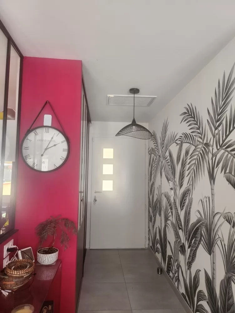 Pose de papier peint dans une entrée à Canet-en-Roussillon par SAS Gouveia.